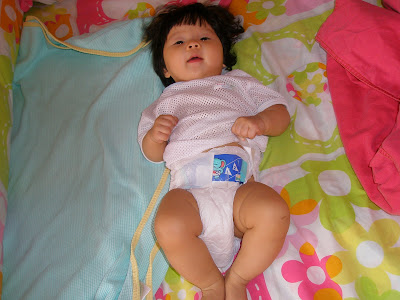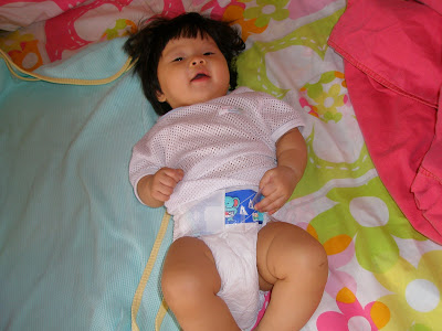 Why you worry she is losing weight??? She is looking darn healthy with those very cuddly thighs!!! What a little darling!!! Makes me wish for one right now. The removing pampers reminds me of Tee when she was that age, cheeky babies!
