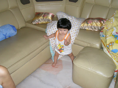 In these pix, Baby C stood for about 2 minutes on the floor.  We were all laughing, clapping our hands and cheering away.  Moments later, she looked confused as if wanting to tell us “O_o…. what’s next mummy, what’s next?  What am I going to do?  I can’t walk and I want to sit down… help me pleeeeeease…..”   We were all laughing at her blur and confused expression.  I think Baby C will be able to walk at 9 months, just like Sherilyn cheh cheh.