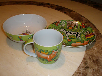 Mah mah got Alycia a very colorful 3-piece bowl and mug set with pictures of dogs from Hong Kong, for her 5th birthday.