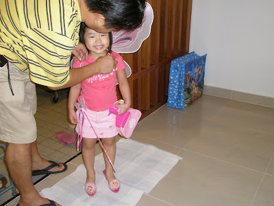 Sherilyn my little vainpot who is really, really, very vain is obsessed with her pair of fairy wings that koo mah sent to her for X’mas from Hong Kong. She was wearing the pair of wings the entire day….. first to the church in the morning and to her koo poh’s house for a X’mas party in the evening. She even put her pair of fairy wings on her bed and I had a good laugh when I saw her putting the wings on the second she got up from her afternoon nap!