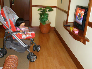 In this pic, I had to strap her onto her stroller and put her right in front of the idiot box to distract her while I fed her some buns and water. She only had her lunch at 5pm.  It was a struggle to make her eat and drink.  Thankfully that night, she ate her dinner of cod fish, steamed egg and spinach.  Shall blog about our dinner at a seafood restaurant by the sea next.