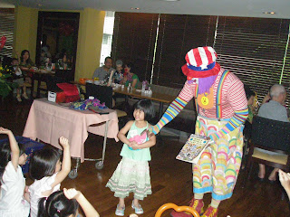 Sherilyn enjoying all the limelight at the magic show yesterday. Guess what she’s doing here? She was actually grinning away and posing for daddy to snap her picture.  Check out her prim-and-proper hands clasped together for the cameraman, haha!   She was so engrossed grinning and posing that the clown had to keep tapping her shoulder to draw her attention back…. and everyone laughed at this cheeky girl, muahahaha!