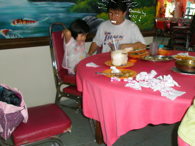 This happened last week when we were having lunch at Paris (Par Lai) Restaurant in PJ. We had ordered several dishes that would surely whet the appetite of any kid but not Sher. When everyone had finished eating (even Baby had finished eating), we all left our seats and stood next to the table, hurrying Sher to finish her food. Daddy had to feed her and put on an angry face but still she could not finish her food. She spat the last spoonful of food out, haih……