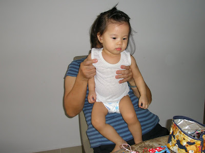 Here she is enjoying a ‘pan leng leng’ hair-do session where mah mah clipped up her hair….