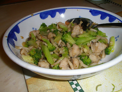 I also fried some eggs and stir-fried a plate of brocolli with fresh shitake mushrooms and homemade fish paste, so that everyone gets some protein, fibre and disease-fighting nutrients from the mushrooms.