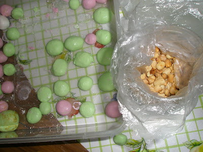 My mum trying to stuff some homemade pandan kaya and homemade peanut butter into the balls but it was a failure. She has never done it before and the ball turned out really huge and a tad distorted.