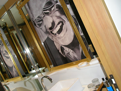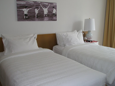 Our bedroom. Pix of rock stars are plastered everywhere in the hotel building.