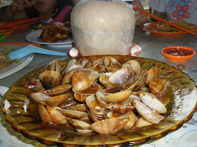 Stir-fried lala (clamps) with sweet sauce. We had pandan coconut too… it was SO tasty and refreshing.