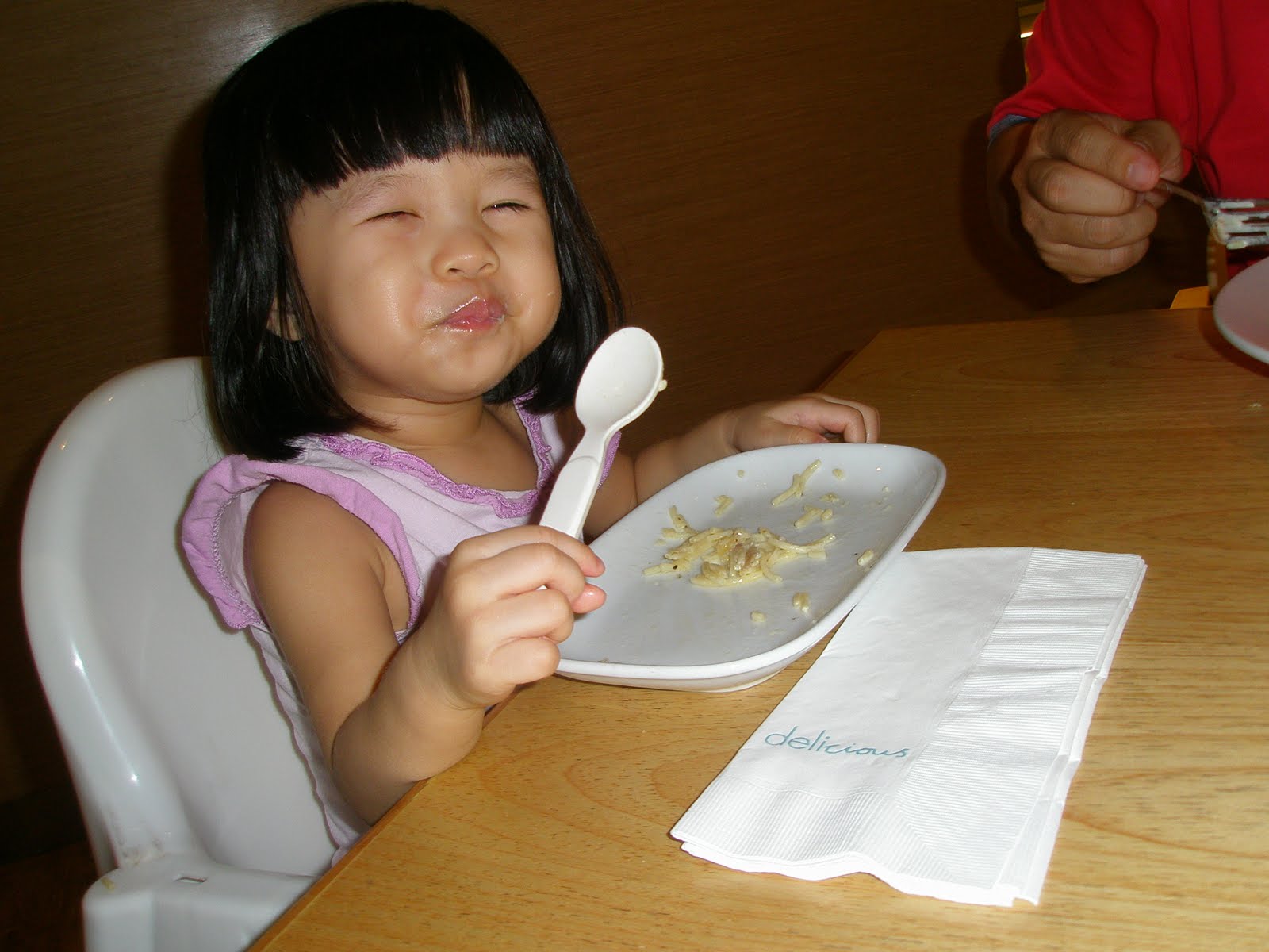 After the eye check up, we went down to Mid Valley to have lunch at Delicious. Baby whose appetite ain’t very good lately chomp down a small plate of pasta, which she shared with daddy.