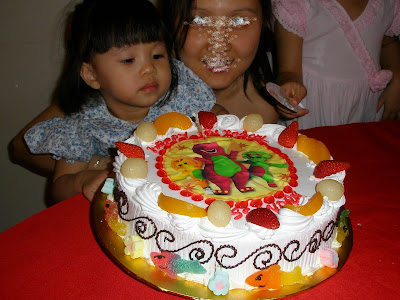 Two days before her 2nd birthday, Baby kept asking me this “where’s my birthday cake?” On her birthday yesterday, she woke up in the morning to everyone giving her hugs, kisses and lots of birthday wishes and happy birthday songs. After her shower, she did not even want to wear the clothes she normally wears at home and demanded to wear her kai kai clothes *roll eyeballs*! She knew it was her special day and she thought we would bring her kai kai the whole day.