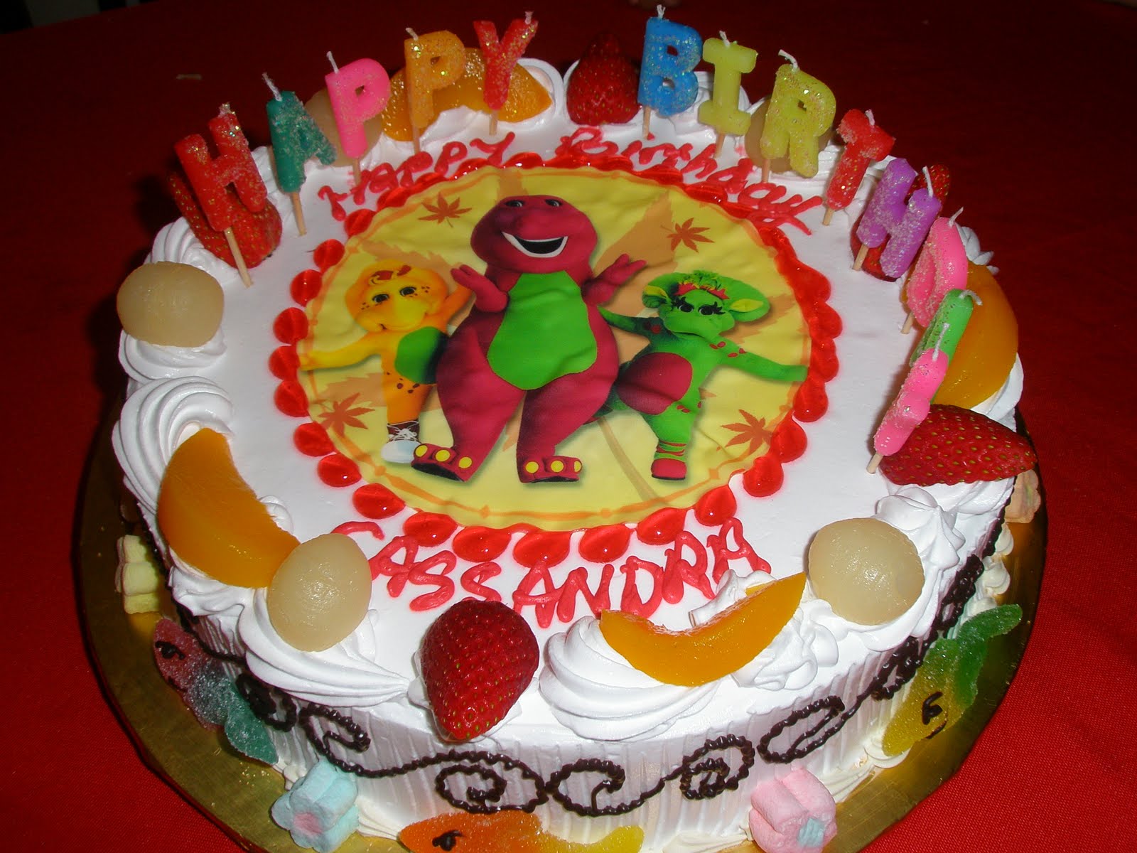 Daddy dearest got his angel a Barney And Friends butter cake with marzipan and candies….