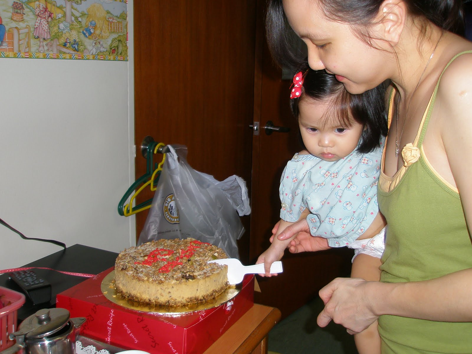 A year ago on 27th May 2009, we celebrated our 9th wedding anniversary at the hospital in Penang with Baby. It was one of the happiest days for me as Baby was finally recovering after 3 weeks of pain and trauma in the hospital. She was discharged from the hospital the following day. That particular wedding anniversary will forever be etched in my memory. See how tiny and frail Baby was in this pic. Her weight dropped from 8.5kg to a mere 7kg after 2 surgeries and 3 weeks of nil by mouth. She was 13 months old then and grossly underweight. Her weight was that of a 6-8 month old baby.