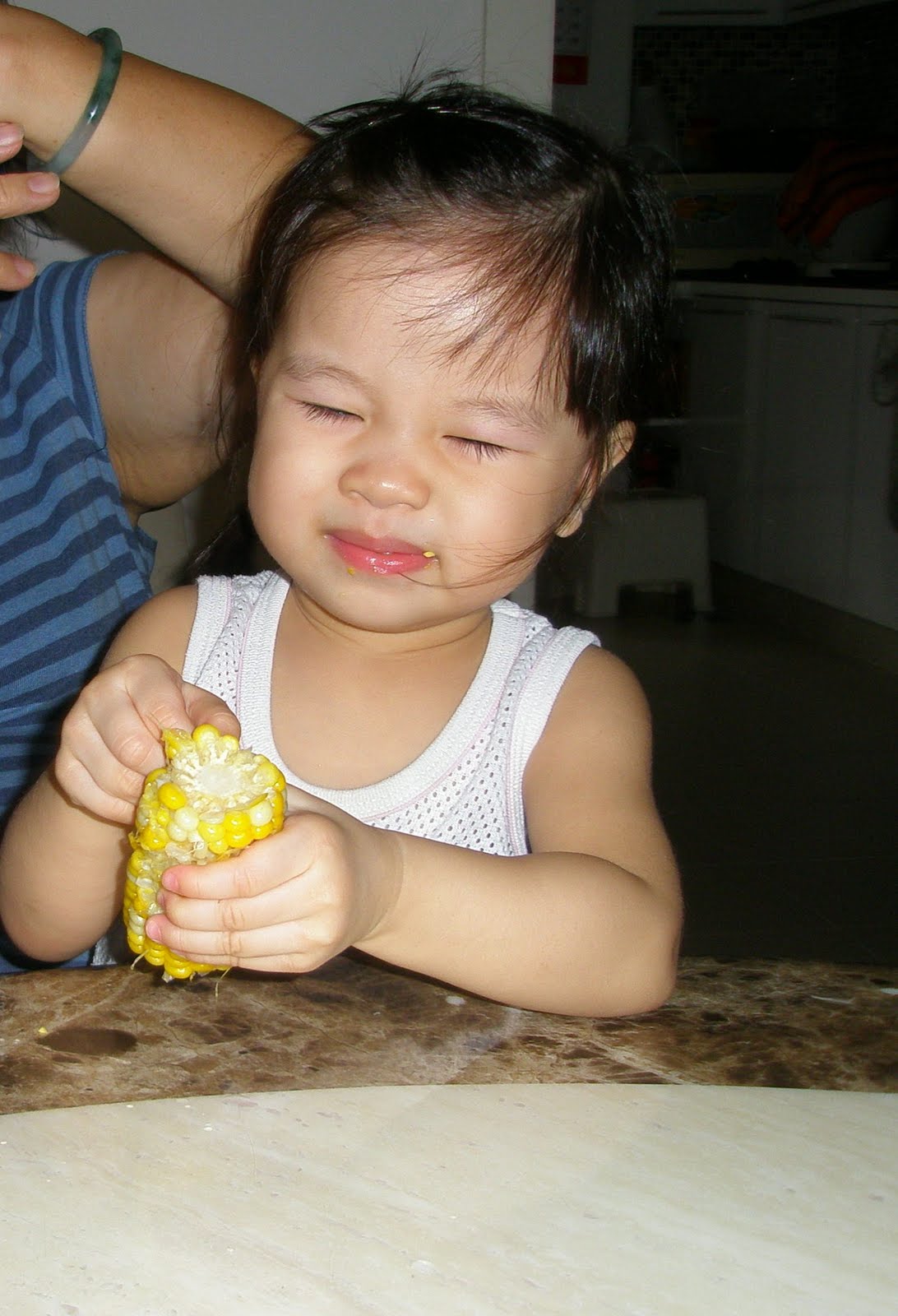 she’s so cute. but hey, corns can be quite to digest, no? i hardly give ziyi corn worrying she can’t digest them well.