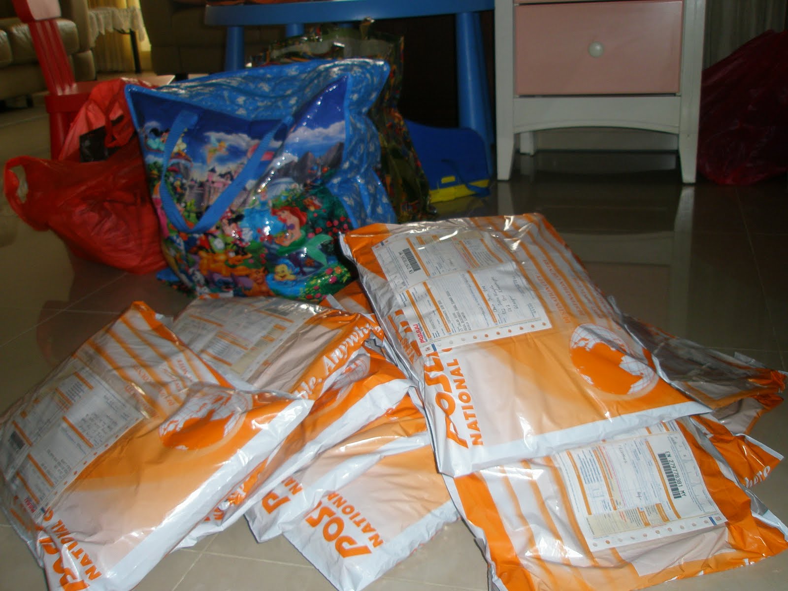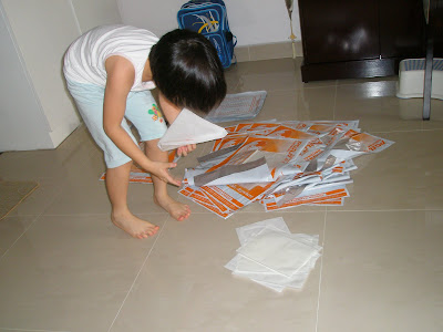 My 2 older girls also helped me tear the Pos Laju consignment notes. Alycia ain’t very good in the tearing and Sherilyn was pretty good in the tearing job. Alycia is better in sticking the docket pocket onto the flyer bags.