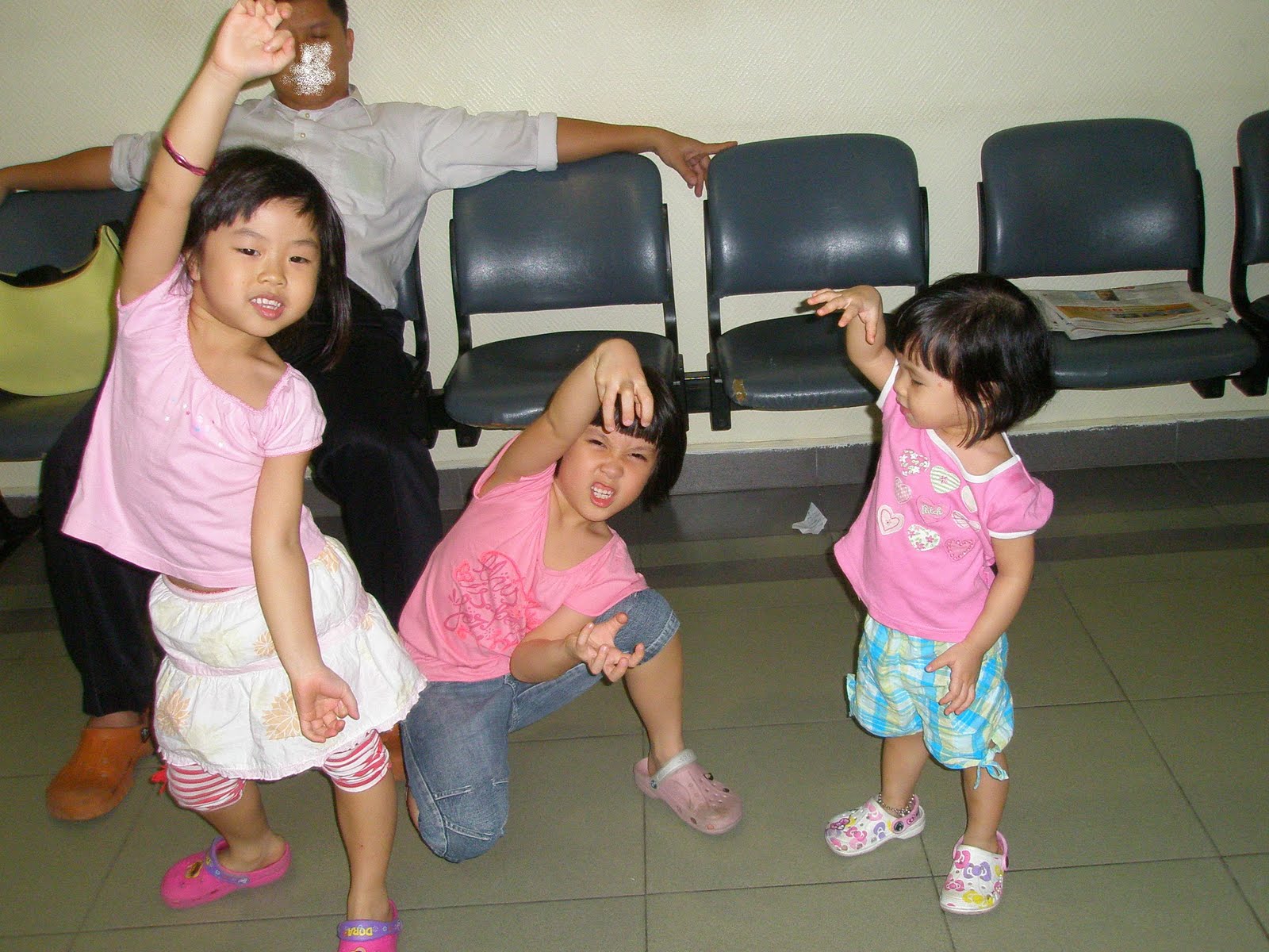 During the school holidays, I hurt my back terribly and resulted in my movement being very limited. I was in great pain and had to go to the hospital to have an X Ray taken on my back. Since my mil has gone to HK, we had to bring the whole jing gang along to the hospital. My 3 rambunctious girls were like 3 wild baby monkeys … jumping, running and making helluva noise at the hospital. Thankfully we were not chided off by the hospital staff as we are regulars there and most of the staff there know us.