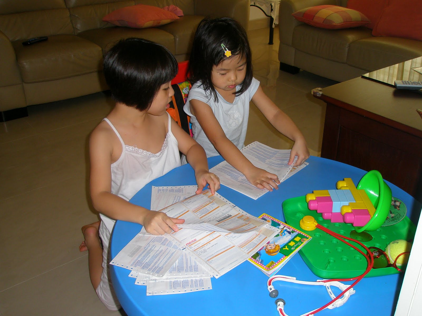 My 2 older girls also helped me tear the Pos Laju consignment notes. Alycia ain’t very good in the tearing and Sherilyn was pretty good in the tearing job. Alycia is better in sticking the docket pocket onto the flyer bags.