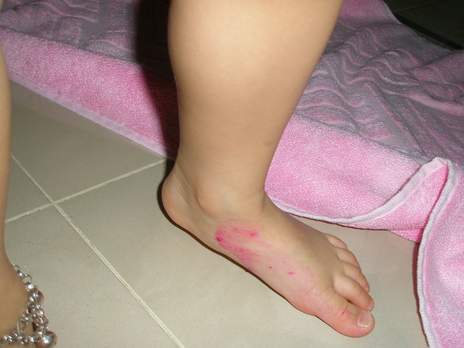 I was in for a shock when I saw something that looked like blood on Baby’s leg the other day. I thought she had found the pair of scissors that I had hidden and cut her hair (again!) and probably cut her own leg. I quickly took a closer look and my fears were allayed when I realized that they were only stains from red dragon fruit. Apparantly, rascal #2 had dropped some dragon fruit on her baby sister’s leg, phew!