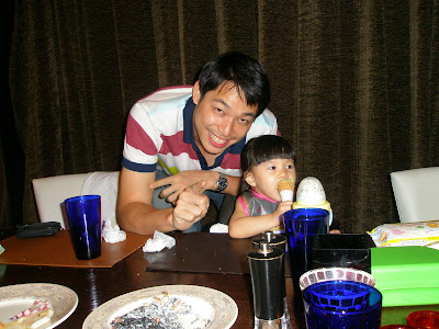 Sherilyn goofing around as usual… and Baby was sucking on a wedge of lemon. Monkey see monkey do. She saw me sucking lemon wedges throughout dinner and she too wanted to try and I was surprised that she was so blasé about the sourness and kept sucking like it was a lollipop hah!