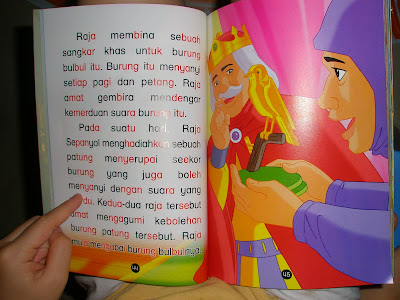 Here’s Alycia reading a BM story book. My mum got her this book from Tesco and it only cost a few ringgit. There is a collection of more than 10 famous fairy tales, translated into BM in this story book.