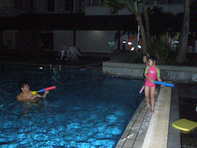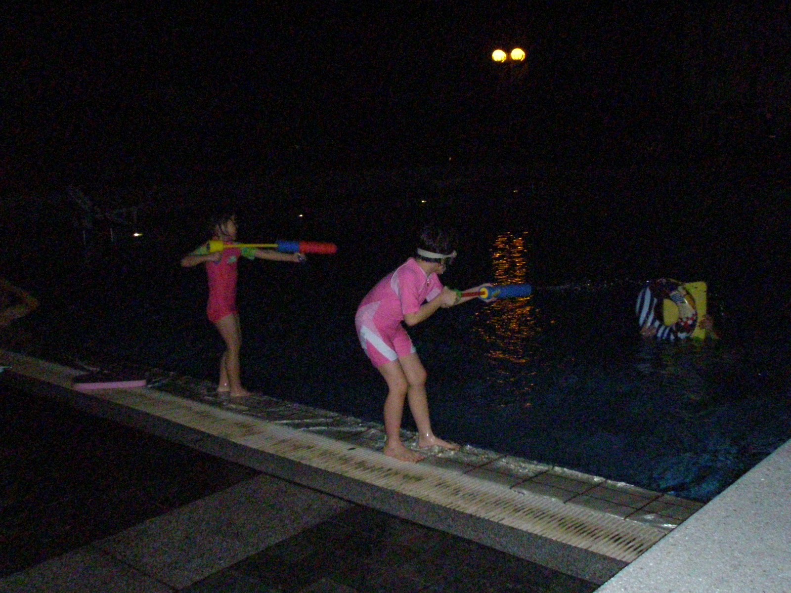 It was a day of bliss and fun for the girls. At about 8pm, daddy brought them down to the pool to swim and to play with water guns.