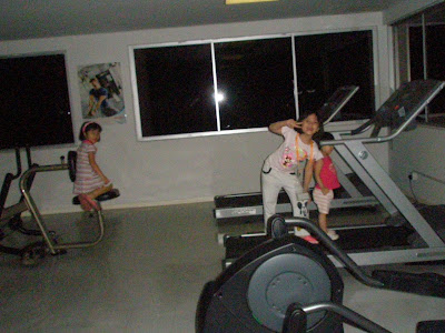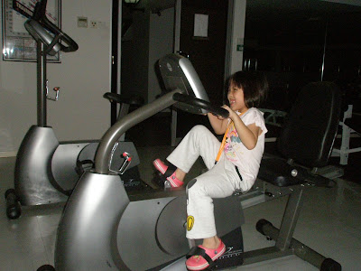 Future fitness junkie like mummy… and darn the busy body guard who shooed the girls out from the gym coz it’s out of bounds for kids below 12yo. But hey, it’s 9pm what and the mummy is here to supervise mah, eesh!!