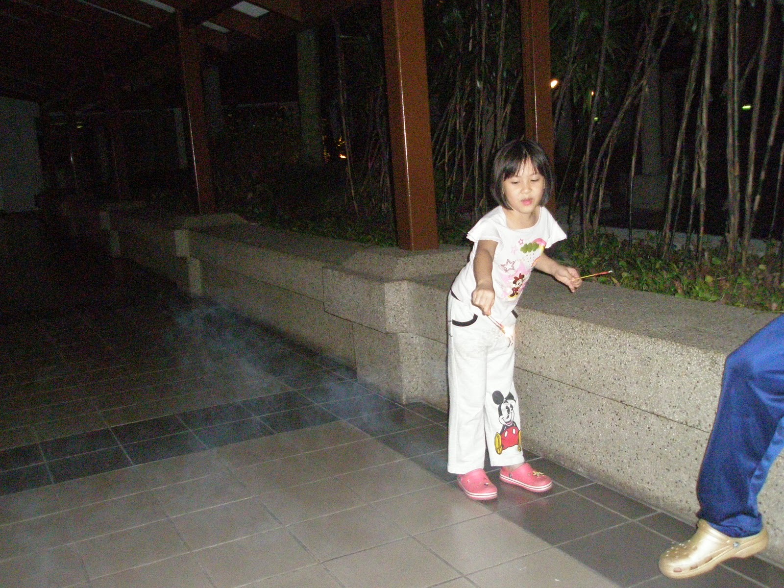 Friday is Pasar Malam (night market) day for us where we will get our ration of fruits, veggie and eggs for the week. It’s also a junk food day for the gals for daddy will eat loke loke (steamboat) at the van and other roadside food. The girls will follow suit too. I don’t really like the idea of my girls eating loke loke but then again, I can’t be overly protective and clean. An overly clean body system will spell trouble when they are exposed to a little unhygienic food in future. That’s what happened to me when I first left my nest 20 years ago to come to KL. Anyway, yesterday we took away some pasar malam food and then daddy suggested that we all have a picnic by the poolside. The girls were delighted… coz daddy also bought some fire crackers and he said he would let off the firecrackers at the poolside.