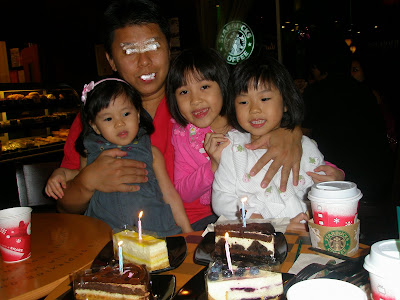 On 30 December (last Thursday) was hubs’ birthday. We had a ‘crabby’ dinner at Tak Fok restaurant at Palm Square, Jaya 1 PJ. This restaurant is well known for their crab dishes. After dinner we went next door to Wendy’s to grab some ice-creams for the girls and then went over to Starbucks to have coffee and a cake cutting session at Starbucks…