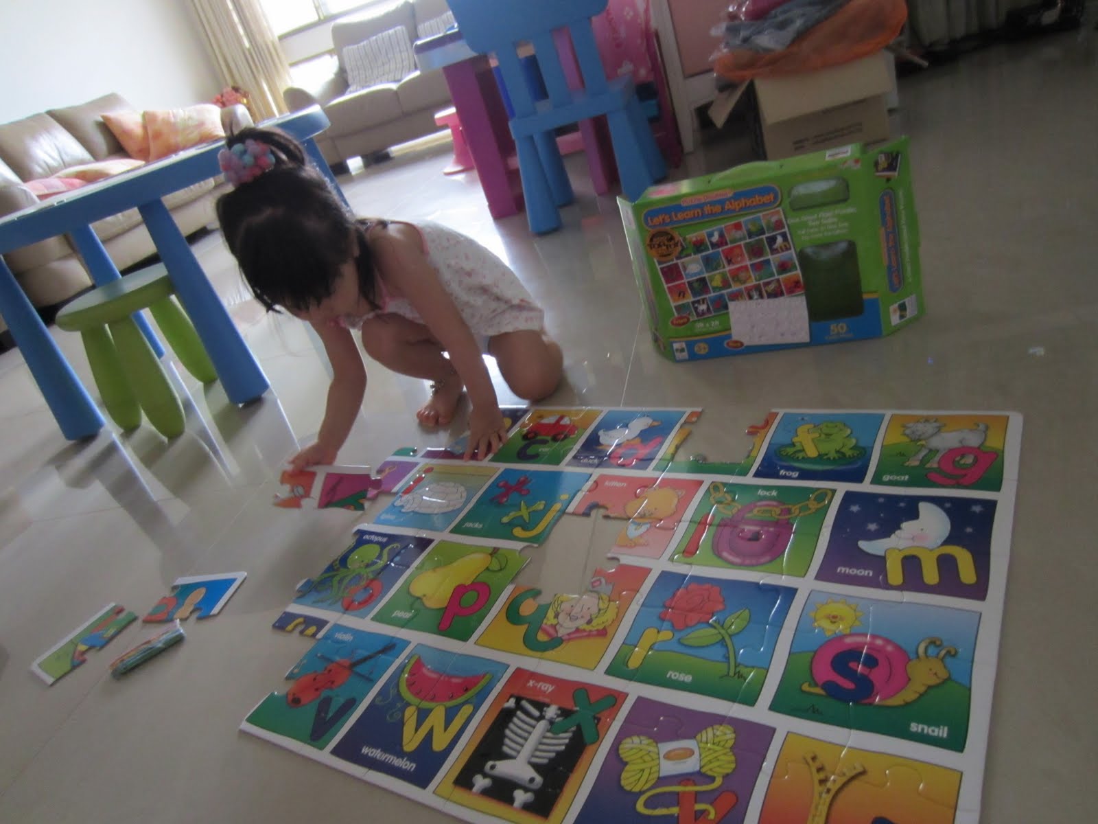 And she is one very ambitious little girl.  She can solve up to 5-6 jig saw puzzles (and fix her favorite ones twice or thrice) in an afternoon and forgo her afternoon nap.