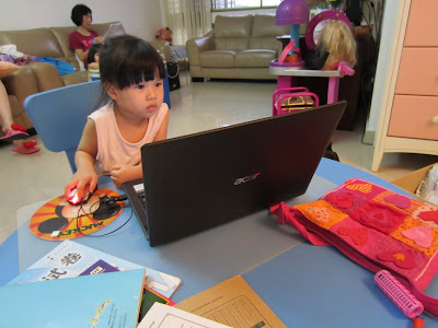To distract Baby from disturbing her 2 jie jies, I let her hog the lappie. This babe is really good with the laptop and knows how to set up the laptop and log on to all her favorite websites on her own!