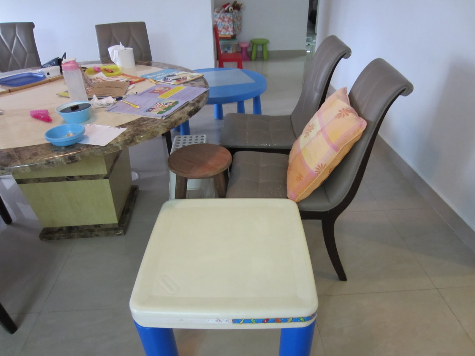 During revision, rascal #2 is always full of crafty ideas to stall time and can never sit still for more than 15 minutes. She’ll walk round the house, pull a high stool to the study table to sit.. with another chair behind the stool…