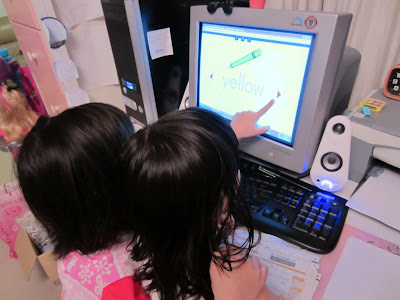 Here Baby’s getting a helping hand from Sherilyn jie jie on how to spell the word yellow. After a few tries, she now knows how to spell all her colors and she’s only 3YO! Of course she does not really know it by hard. It’s by trial and error but after a few tries, she more or less knows the flow of letters for the spelling of all the colors.