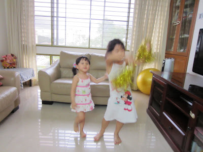 ..and she’s also teaching her baby sister how to perform pom pom dance. When these 2 girls get together in a jovial mood, I can be sure to see lots of dancing, prancing, singing and of course fights too!
