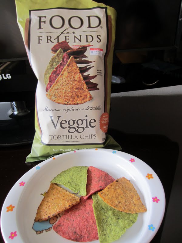 Remember my earlier post on Food For Friends organic tortilla chips?  I got another pack and this time, I got the multi-colored veggie flavored one.  The red chips are made from beet root powder, green ones from spinach powder and yellow ones from organic corns.  Yums, feel so good when I munch on them. Can feel the chips lift my mood up as the stress melts away hehehe….