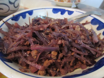 Stir fried purple cabbage with lots of garlic and minced pork…