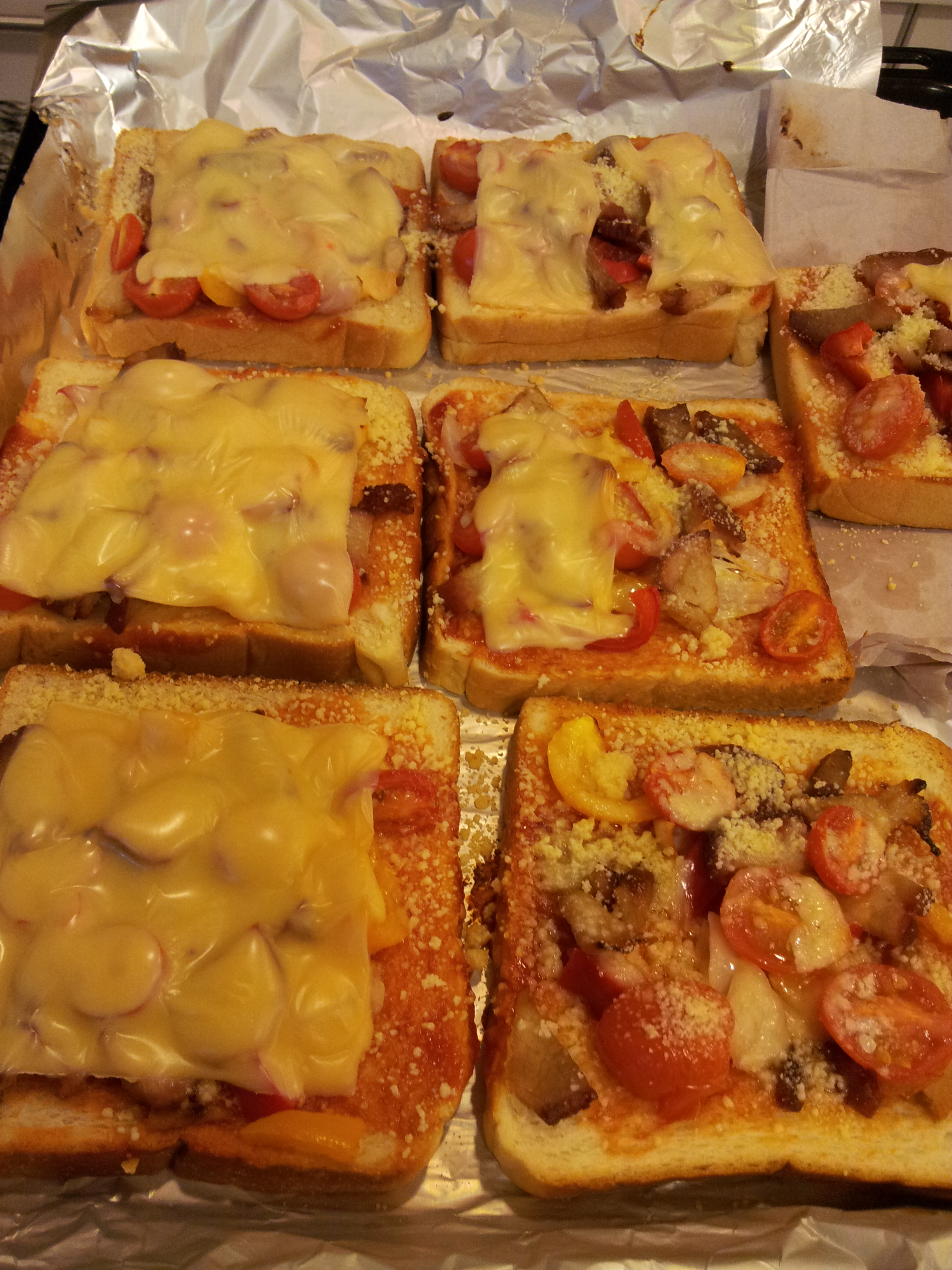 Once all the toppings are spread on the bread slices, I baked it in the oven for 7-8 minutes (pre heated).