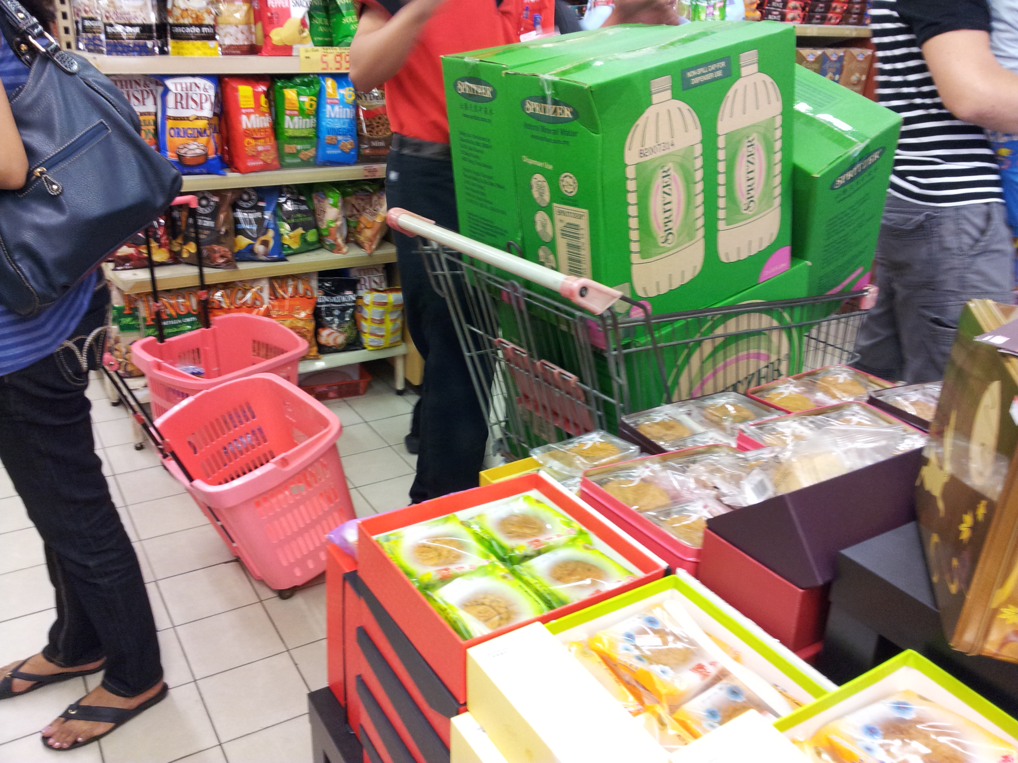 Almost every shopper who was at the mini market bought 2-3 boxes of bottled drinking water.