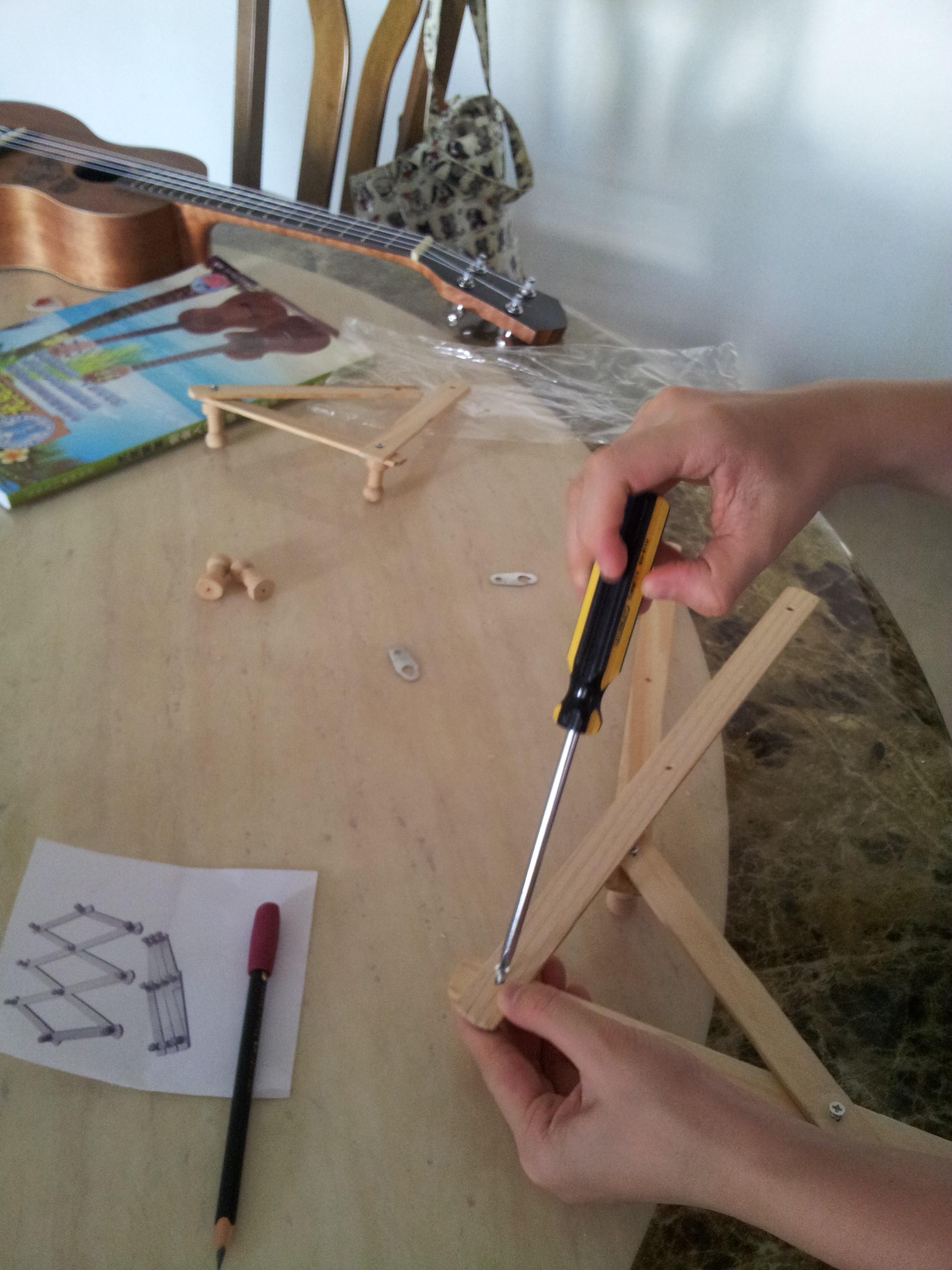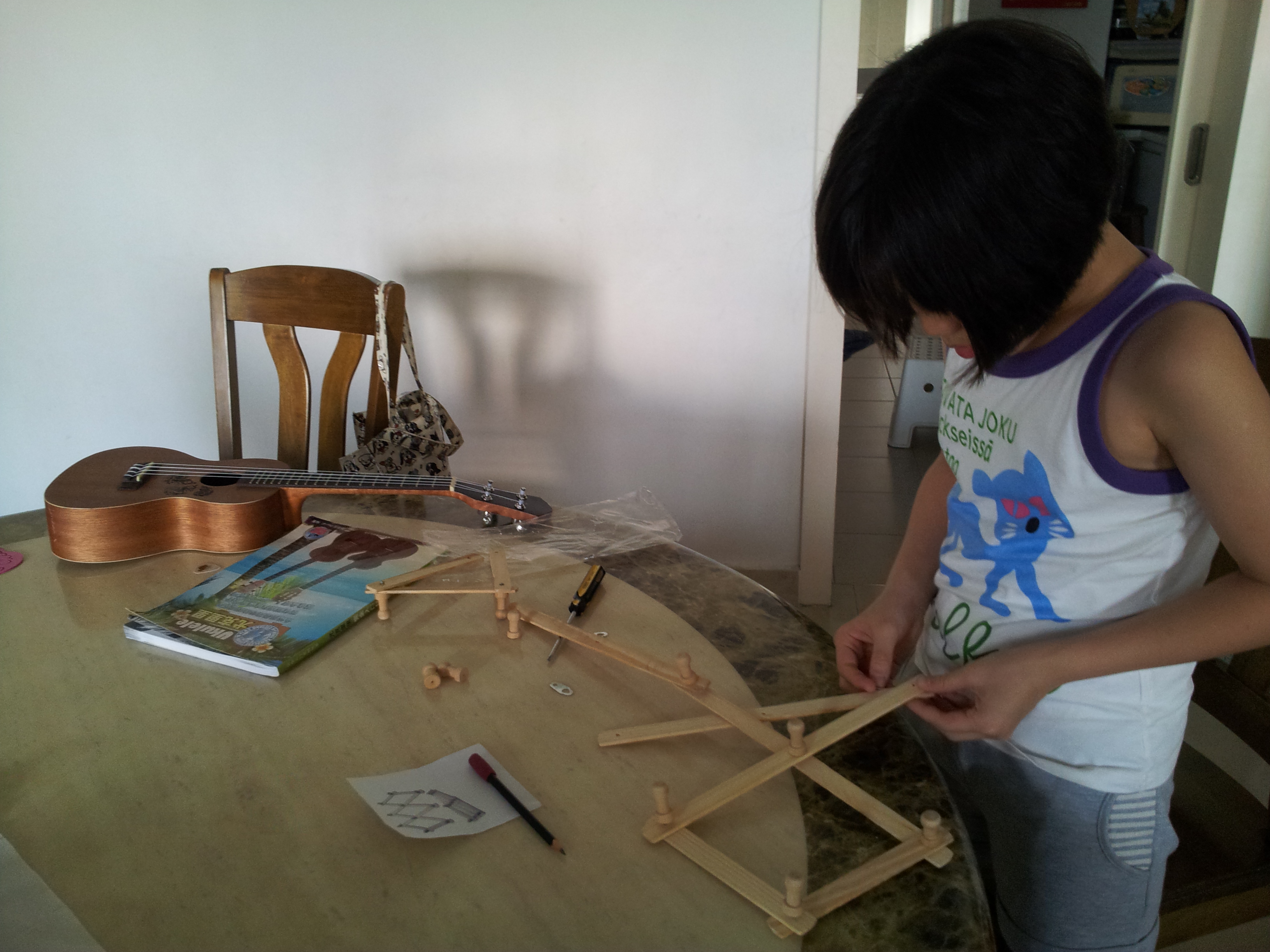 This is her Kemahiran Hidup (Living Skills) homework from school and the pupils are required to assemble a clothes hanger by referring to a manual.