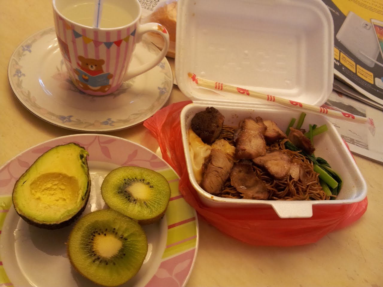 To avoid having a whiny kid bawling at the sight of porridge, I packed wanton noodles for my most persnickety daughter for lunch…
