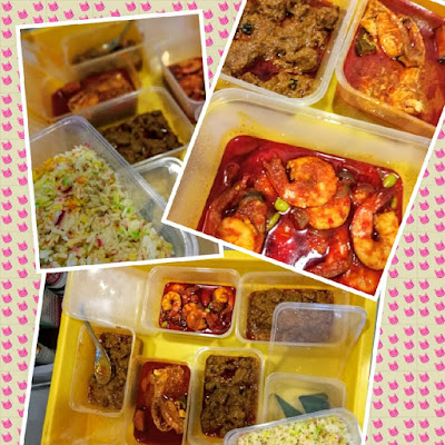 We had some glorious curry dishes for dinner cooked by hubs’ chef: sambal prawn with petai, assam fish, beef rendang, nasi hujan panas (colorful rice cooked with spices or Rainbow Rice) and Nyonya kuih. The portions were really big and I stashed some away in the freezer. We are going to eat the same stuff again tomorrow 😀
