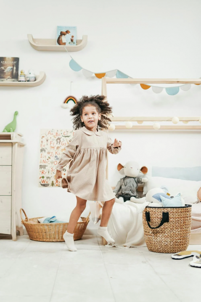 Designate specific areas for different types of play. For example, use foam mats and soft climbing blocks in an active play area. Set up a reading nook with a comfy kid-sized chair or beanbag and accessible book storage. Create a ‘stage’ area with play curtains and dress-up clothes for pretend play. Build in plenty of floor space for building blocks, train tracks or playing with toy cars. You could also dedicate part of the room to arts, crafts and sensory play if space allows.