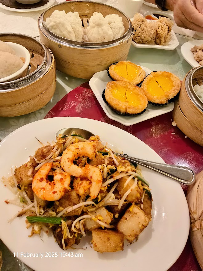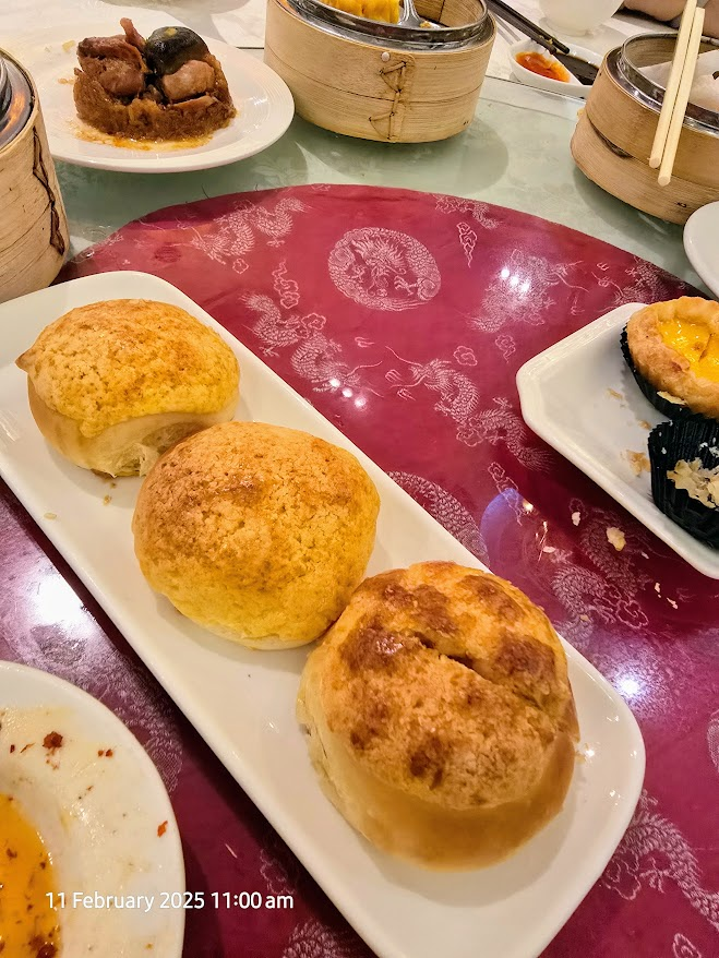Minutes later, while in the car, he finally revealed his plan—dim sum at Xin Cuisine at Concorde Hotel! I was absolutely thrilled because Xin Cuisine serves some of the best dim sum I have ever had. True to tradition, my husband ordered all our favorite items: steamed cha siu pau, siu mai, har gau, cheong fun, fish balls, pork porridge, egg tarts, coconut polo buns, and cha siu baked buns, among others. This time, he also decided to try something new—Siew Yoke (roast pork). It turned out to be one of the tastiest Siew Yoke I have ever had, with a crispy crackling skin, the perfect fat-to-lean meat ratio, and just the right amount of seasoning without an overpowering porky odor. It was an excellent addition to our usual dim sum spread.