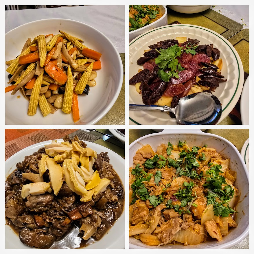 That evening, we continued our celebrations with an early Chap Goh Mei dinner at my husband’s Aunt Wendy’s house. The Yaps gathered for a traditional potluck feast, featuring all the beloved Hakka Chinese New Year dishes. We indulged in braised pork belly with dried oysters and black fungus, steamed Chinese sausages and liver sausages with arrowroots (Nag Ku), steamed chicken, homemade Yee Sang, and many other delectable dishes. After a satisfying meal, we had our final card-playing session of the season. Our next round of card games will likely be during next year’s Chinese New Year!