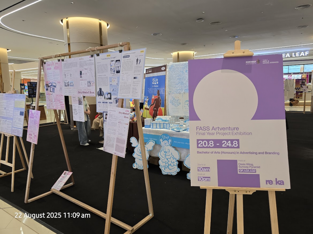 Yesterday, I had the pleasure of spending some quality time with my eldest daughter, Alycia, at Sunway Pyramid. The occasion was her final semester’s project exhibition for Sunway University’s Faculty of Arts and Communication. Her work, along with that of her classmates, was on public display, and I was so proud to be there to show my support and see what she has dedicated herself to for the past few years. It was also wonderful to finally meet some of her course mates in person, after having seen their photos for so long.