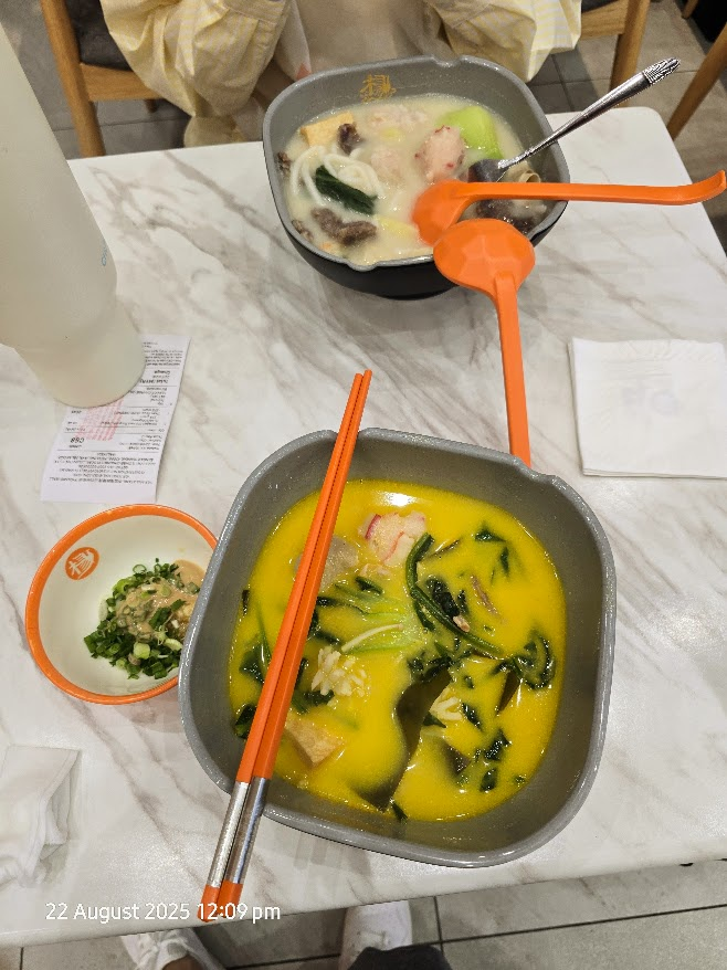 The unique thing about Malatang is that the price is determined by the weight of your chosen ingredients. You have to be strategic! I made sure to select lighter vegetables, some meat, meatballs, and seaweed, and my bowl came to a reasonable price of no more than RM20. Alycia, however, ended up with a massive bowl that cost a whopping RM39.68! We were both a little shocked, but she assured me that a similar restaurant near her university is much cheaper. Despite the price, we both thoroughly enjoyed our meal. I particularly loved the collagen chicken soup broth I chose; it tasted remarkably similar to the famous one at Haidilao.