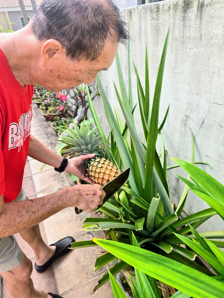 The pineapple grew into a huge, beautiful fruit — almost 2kg! We were all so excited holding it in our hands, amazed that something this big came from a humble pot on our little home garden. We honestly can’t wait to cut it open and taste it. Somehow, homegrown fruit always tastes sweeter.